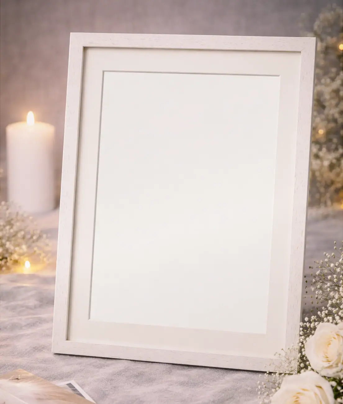 Bilderrahmen 30×40 cm aus Holz weiß lasiert. Für das schönste Foto Ihrer Liebsten auf der Trauerfeier oder für zuhause. Mit unserem Fotodruck fertig gedruckt und perfekt eingerahmt. Auf Anfrage erhältlich: